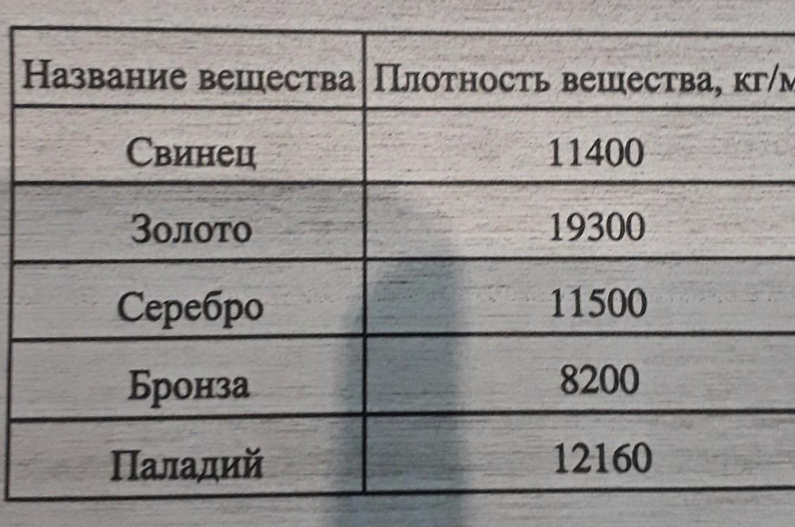 В таблице даны плотности некоторых твердых веществ. Из них изготовили сплошные шарики (без полости внутри) одинакового объёма. Назовите материалы, из которых получаются самые тяжёлый и самый легкий шарик