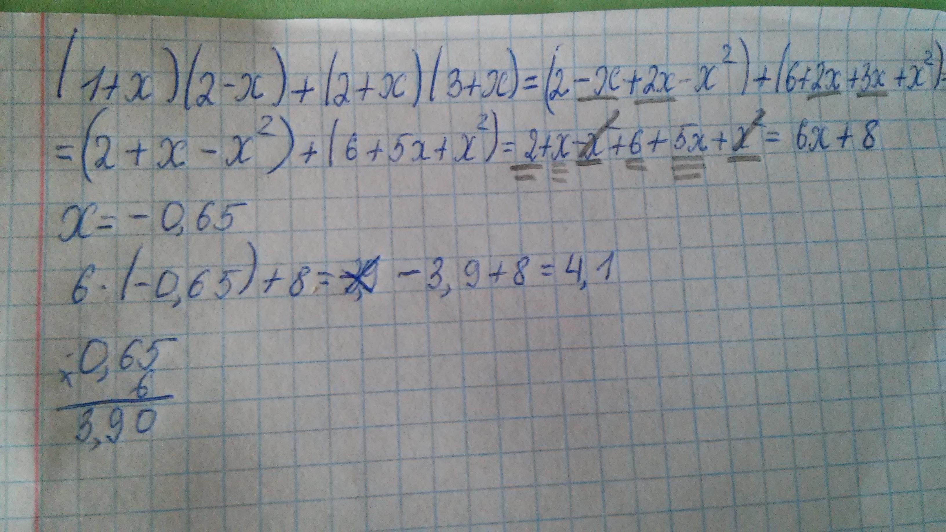 (1-0,65)(2-0,65)+(2-0,65)(3-0,65)=(0,35)(1,35)+(1,35)(2,35)=0,4725+3,1725=3,635
