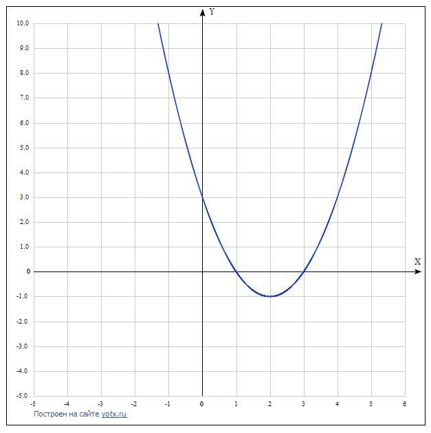 х²-4х+3=0 D=b²-4aс, D=(-4)²-4*1*3=16-12=4 х=(-в±√D):2а , х=3 , х=1, значит (3;0) (1;0)