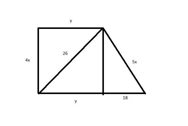 Боковые стороны прямоугольной трапеции относятся как 4: 5 а разница основ равна 18 см. Найти основания трапеции, если ее меньше диагональ равна 26 см