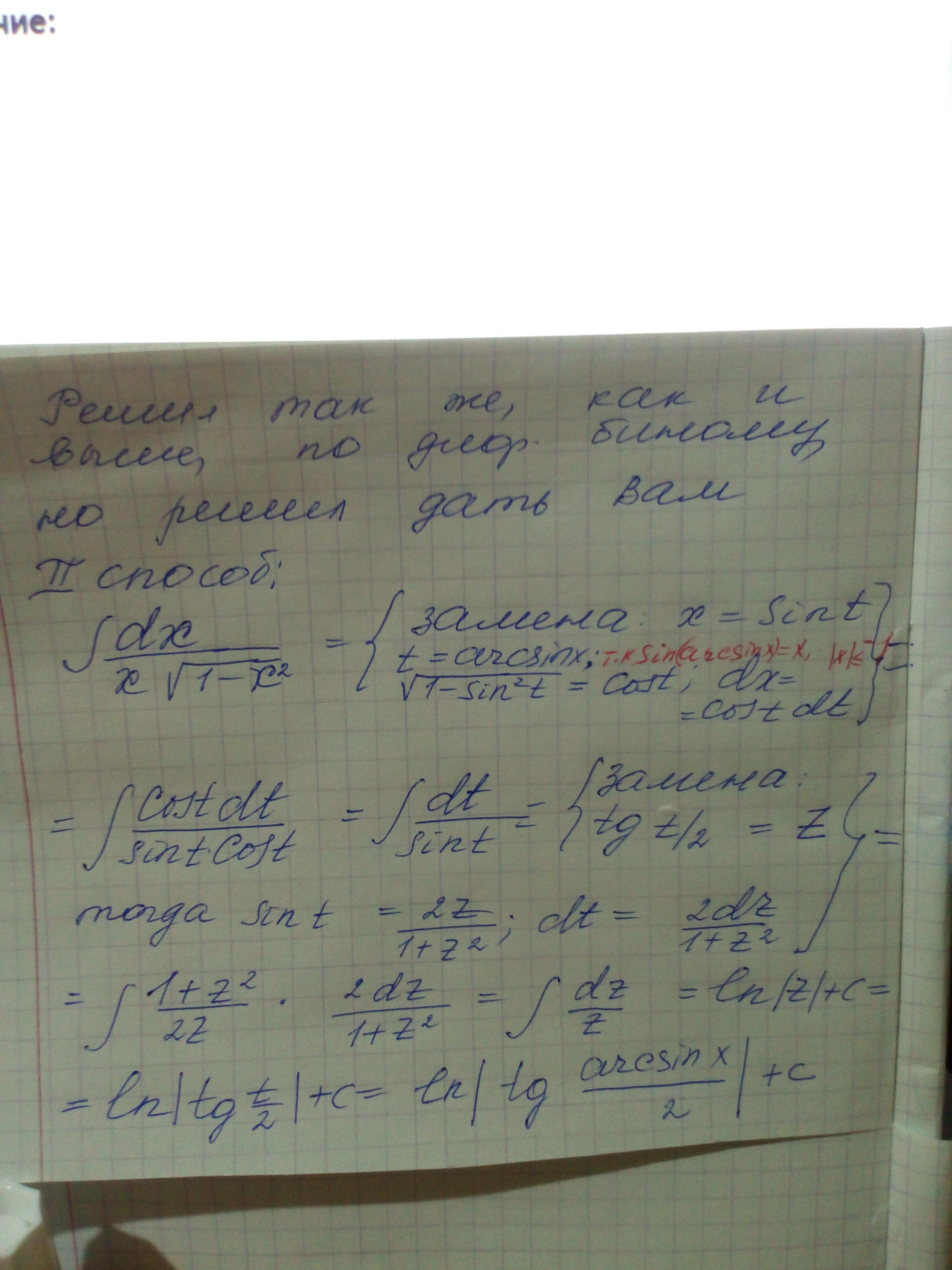 Для данного интеграла проверим второй случай: , следовательно, сделаем замену: