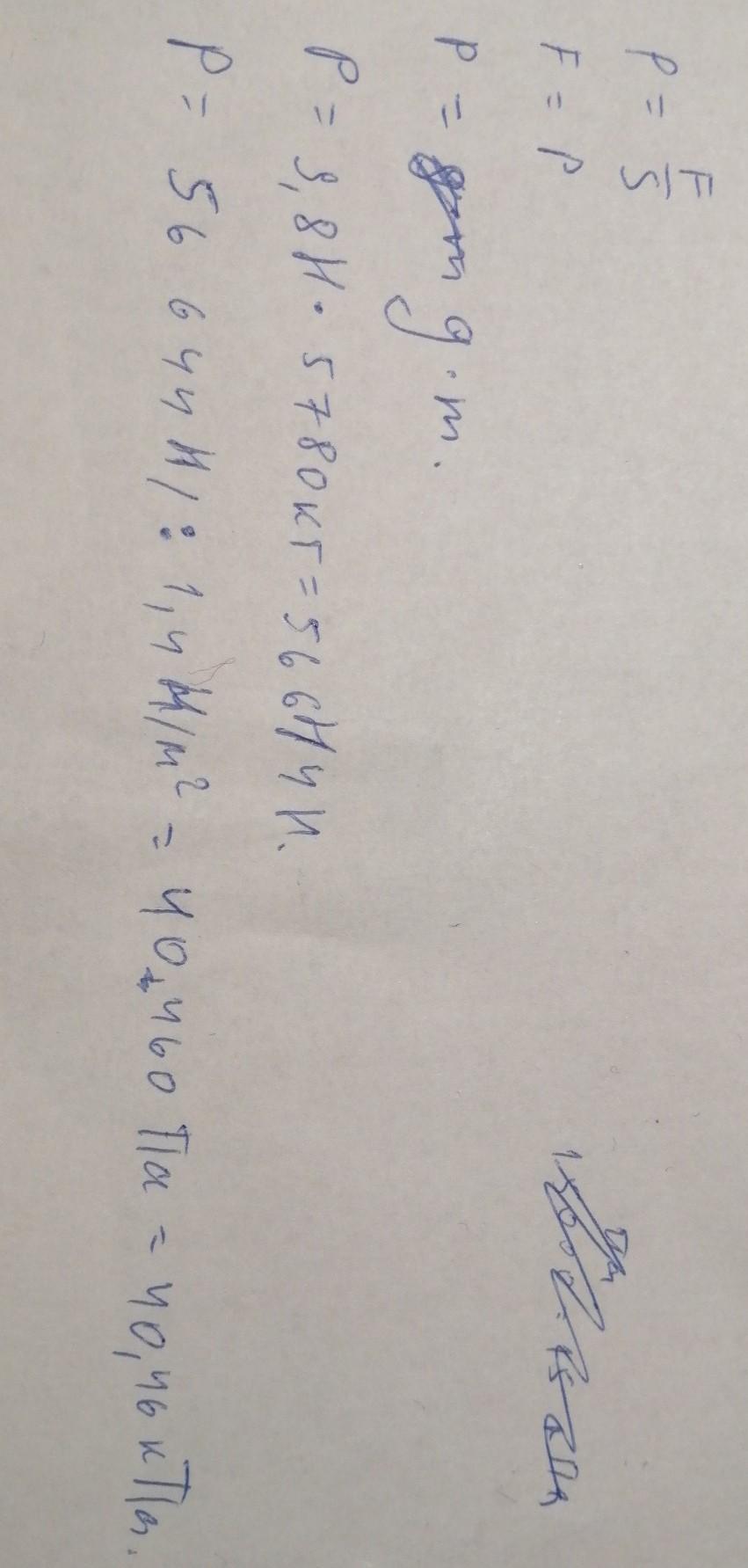 Гусеничный трактор массой 5780 кг имеет опорную площадь обеих гусениц 1,4 м2.