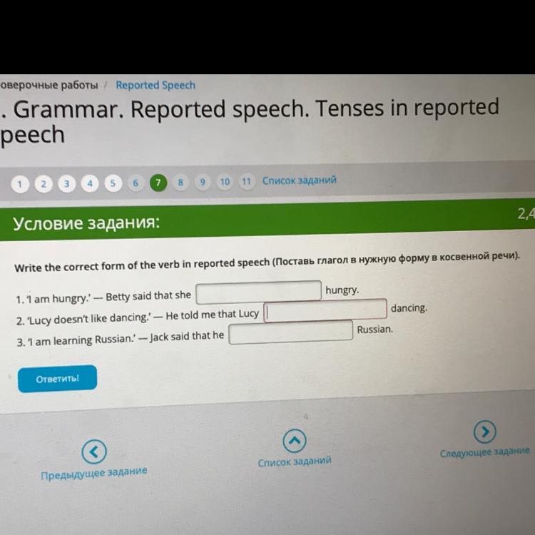 3."I am learning Russian. "- Jack said that the was learning Russian.