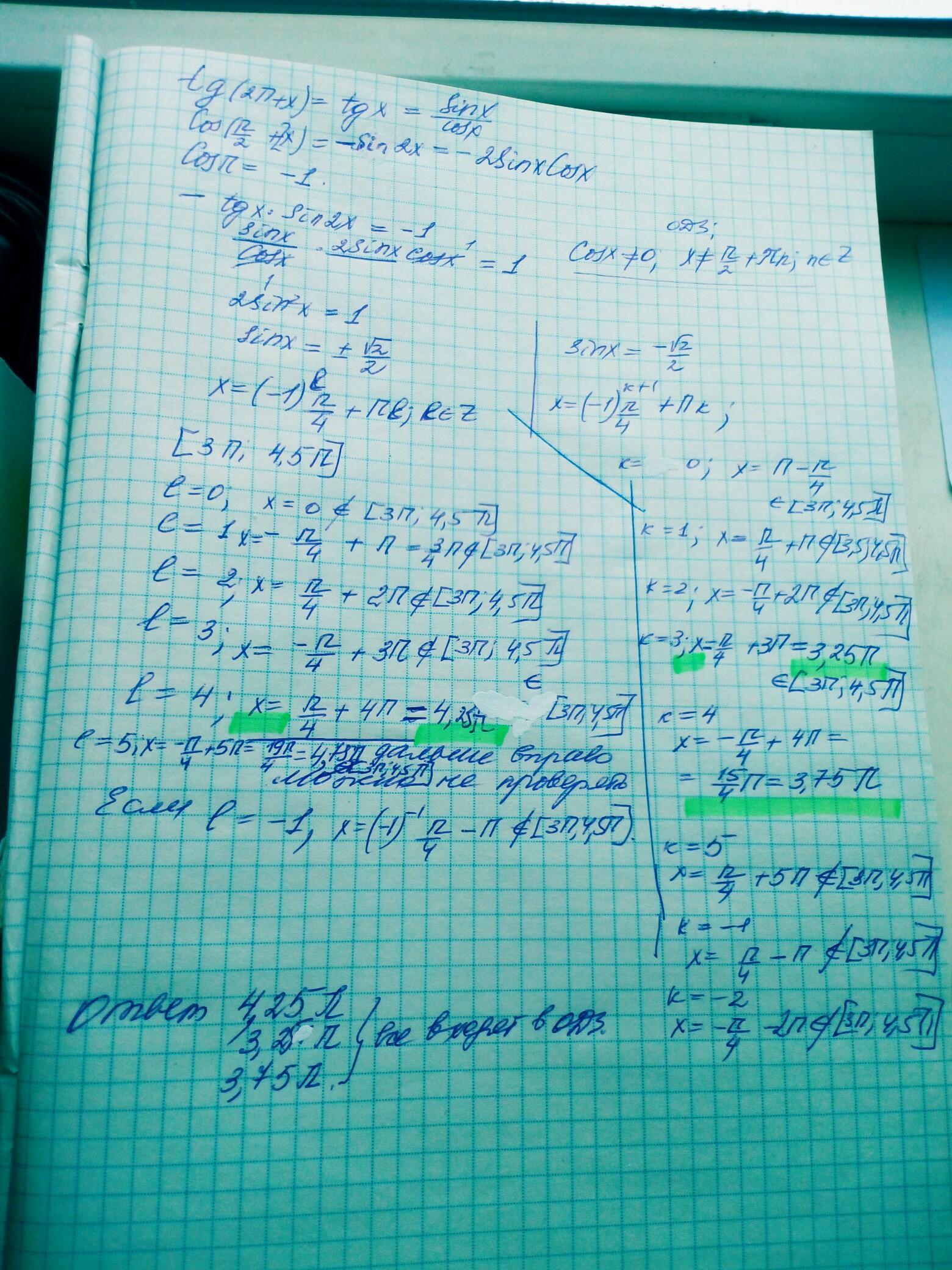 б) Укажите корни этого уравнения, принадлежащие отрезку [3п;9п/2]