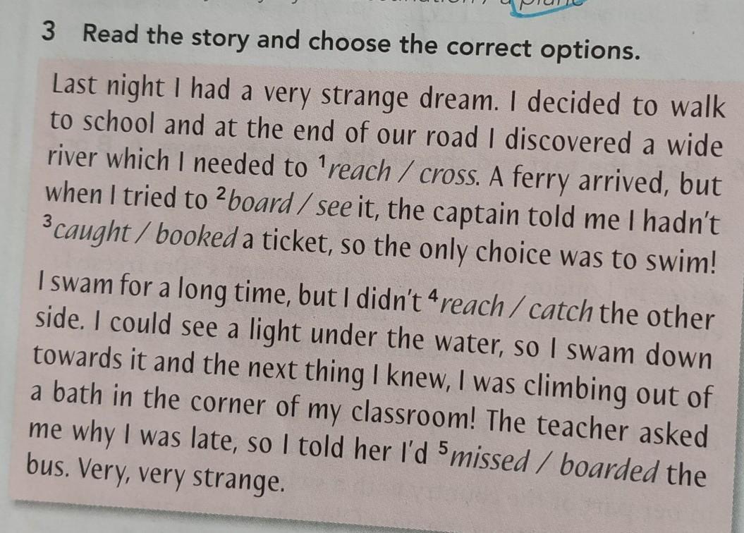 1 )cross 2)board 3)booked 4)reach 5)missed