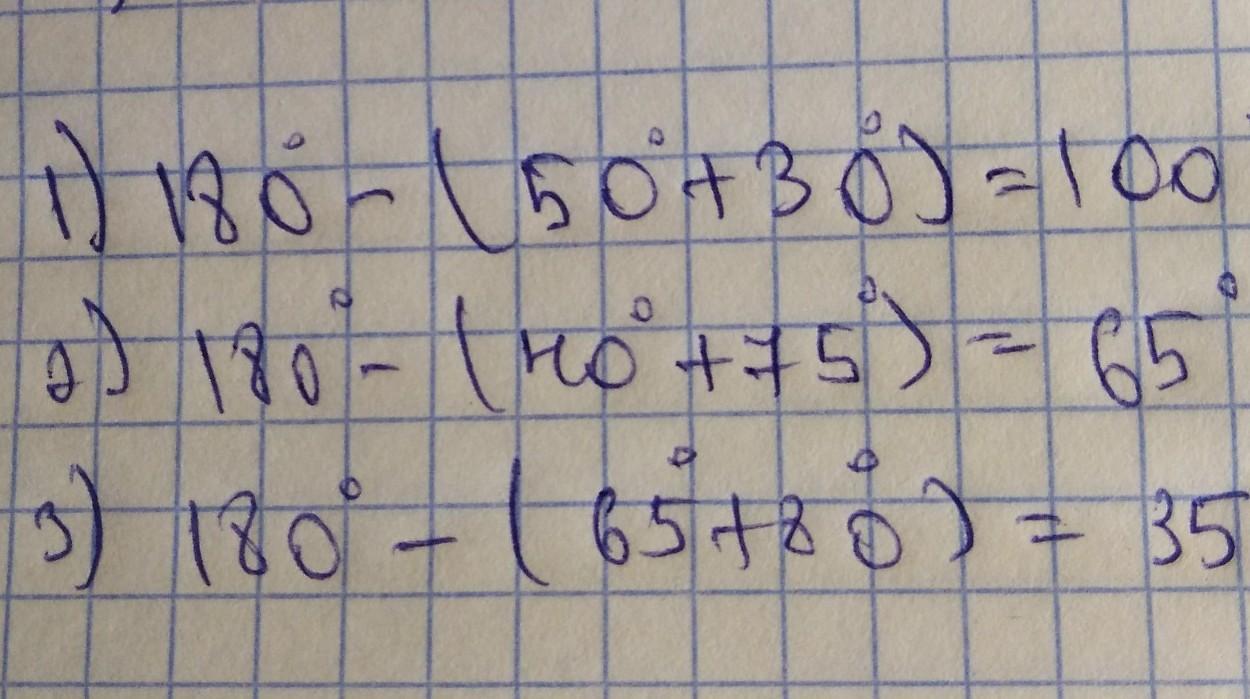 в треугольнике сумма трёх углов всегда равна 180 градусов.