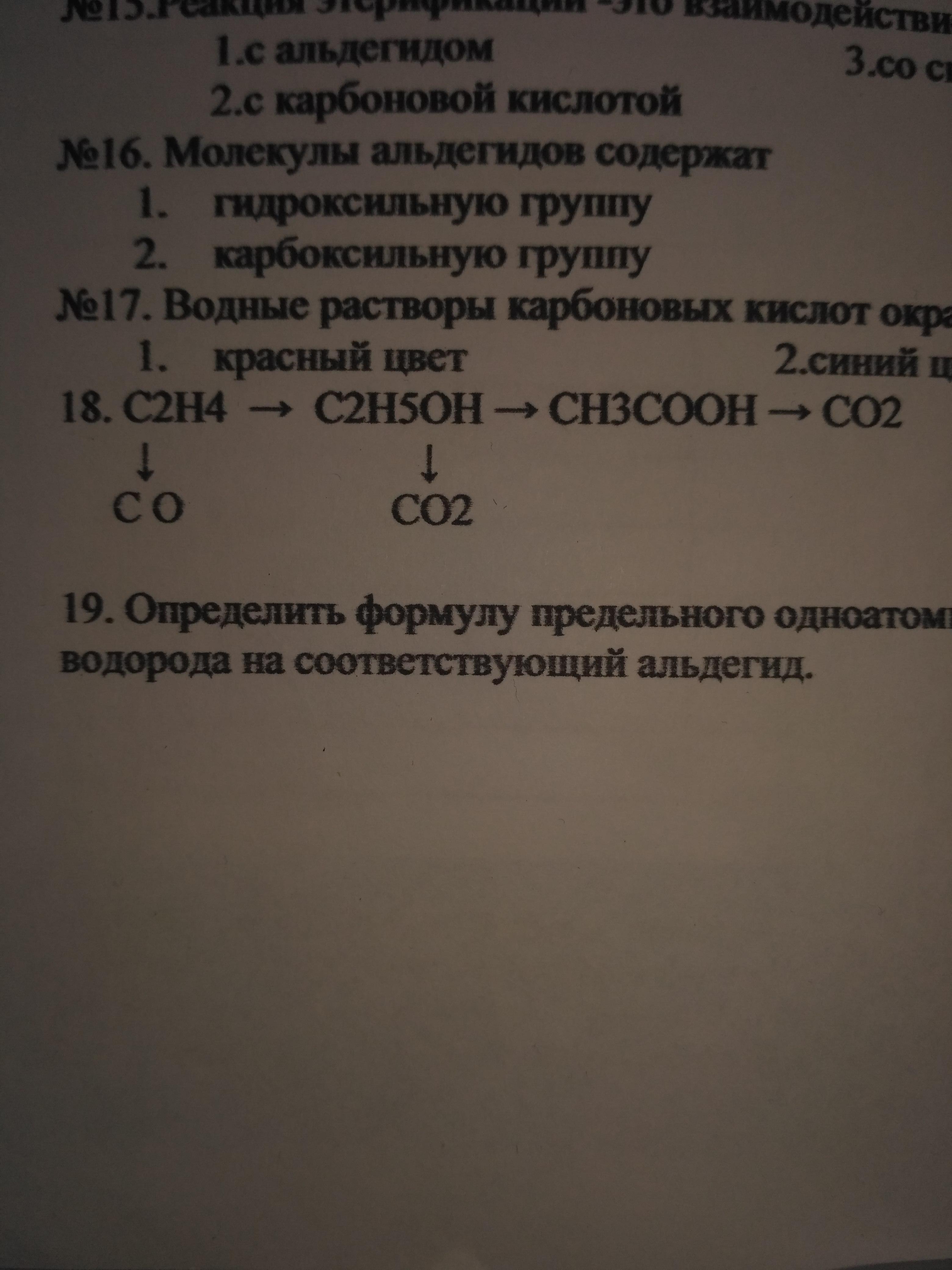 (18 задание на листочке) Проведите химические реакции, 10 класс, спирты,альдегиды, карбоновые кислоты, кетоны, сложные и простые эфиры