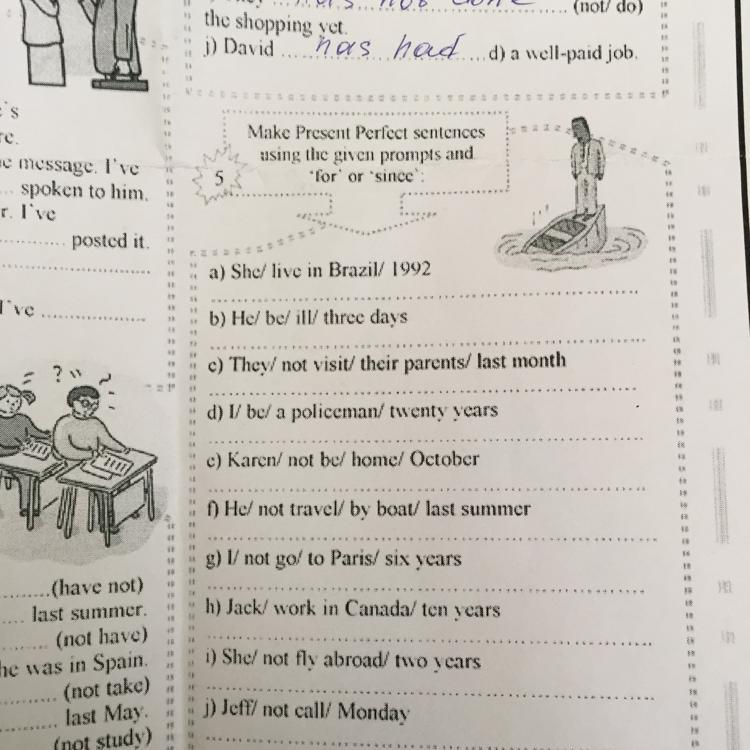 Make Present Perfect sentences using the given prompts and 'for' or 'since'