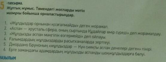 Жұптық жұмыс.Төмендегі жоспарды мəтін мазмұны бойынша орналастырыңдар.