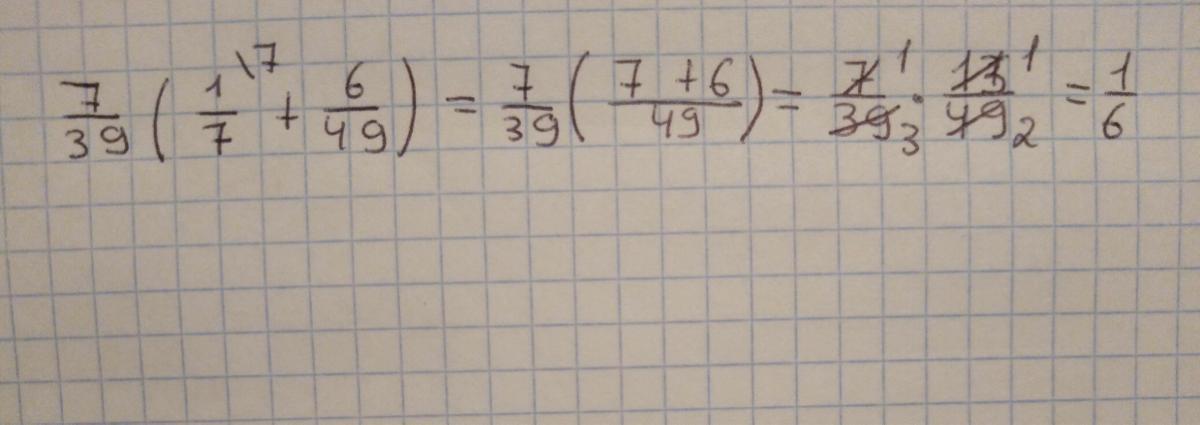 семь тридцать девятых умножить (одна седьмых + шесть сорок девятых)