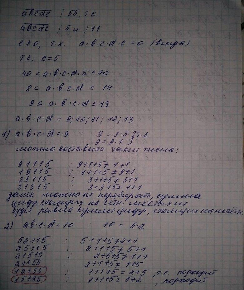 Найдите наименьшее пятизначное число, кратное 55, произведение цифр которого больше 50, но меньше 75.