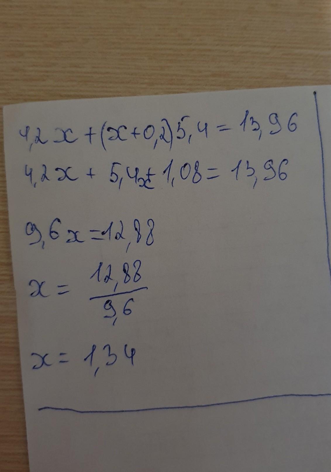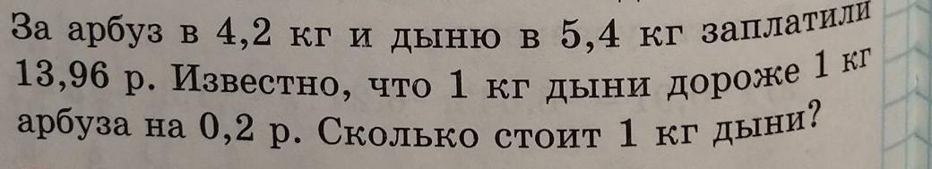 (х+0.2)×5.4- цена дыни, так как она больше на 0.2 за кг.