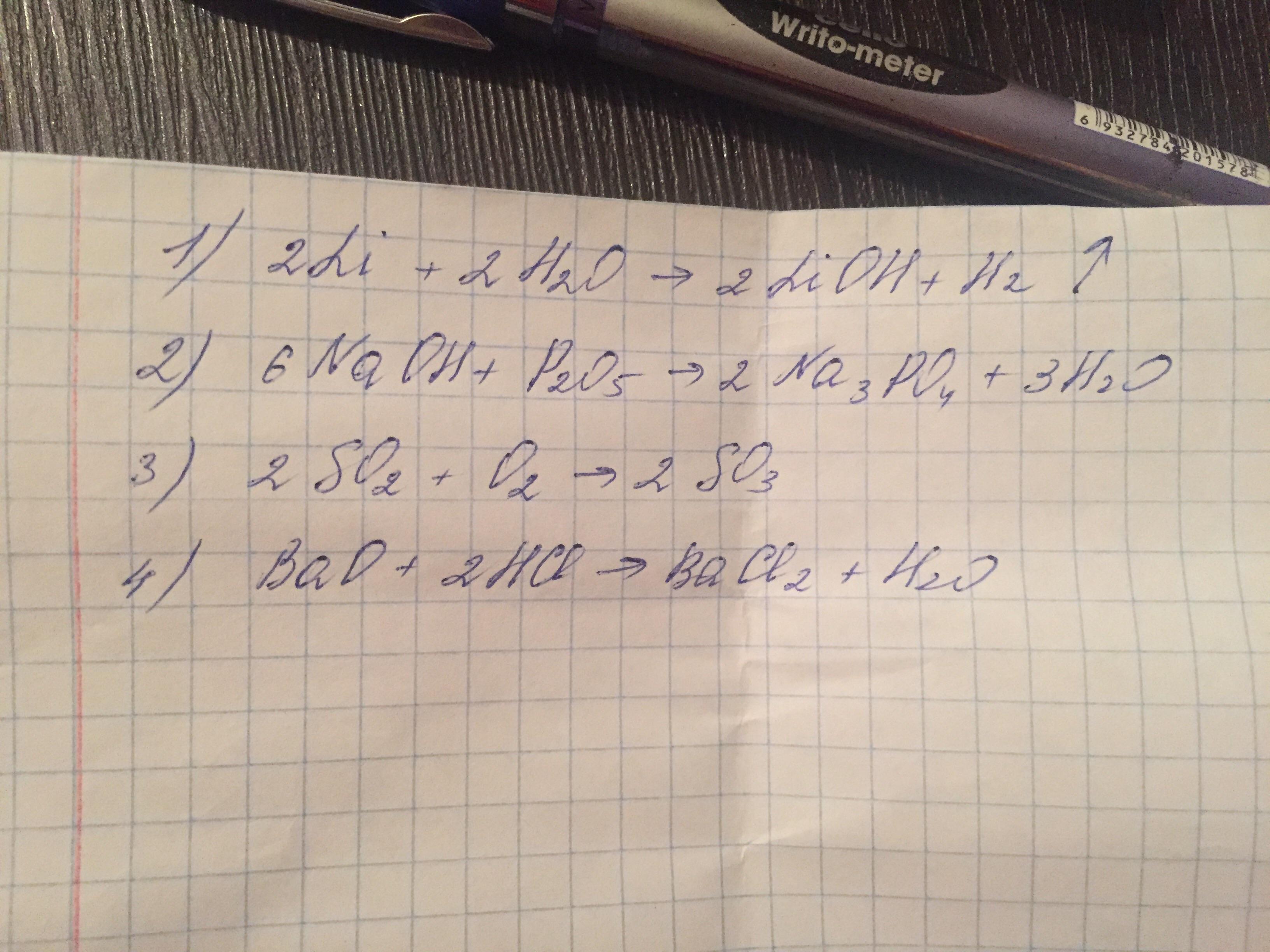 1) Li+ Н20 -> LiОН + _Н2
