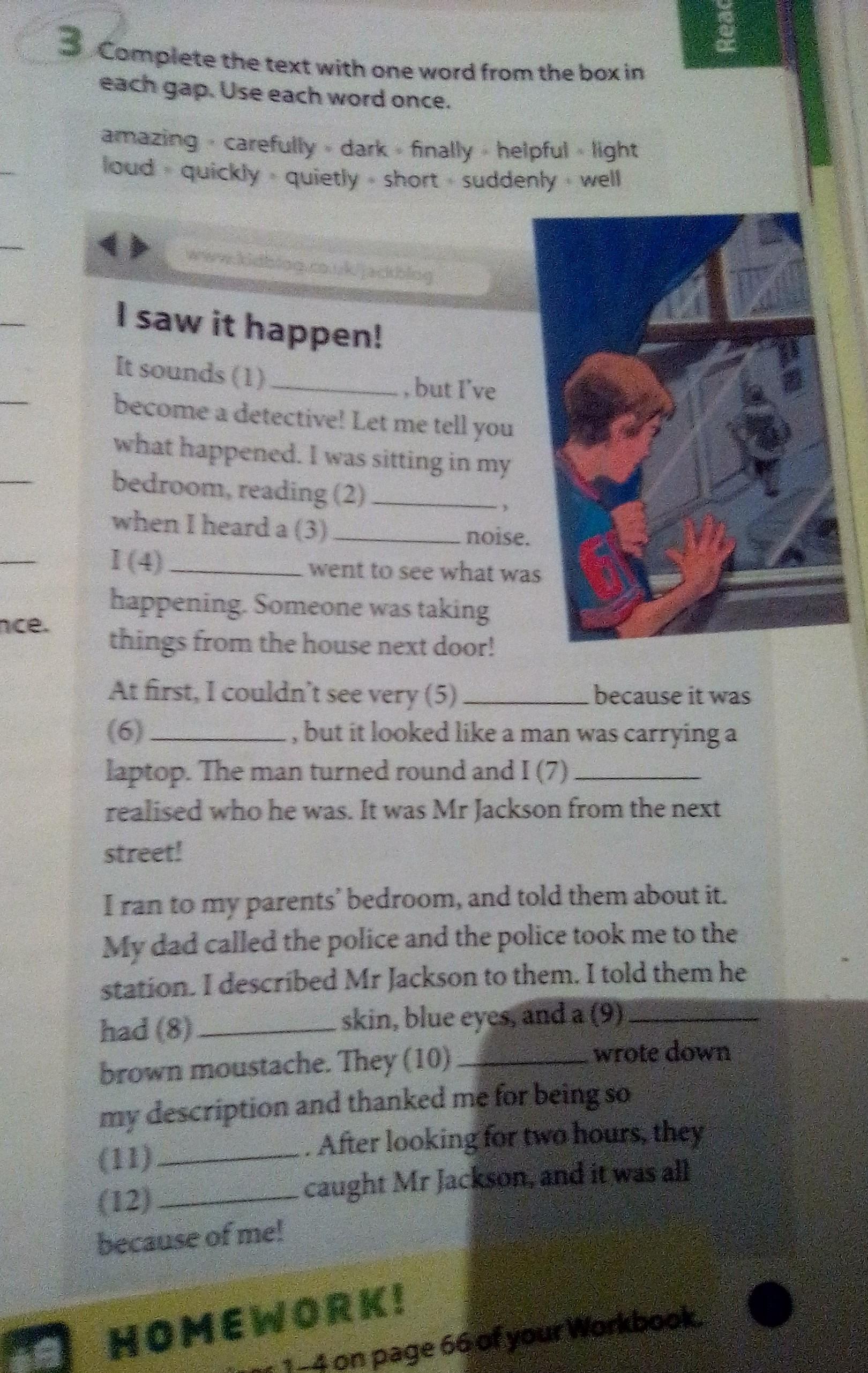 1 . Amazing 2. Quietly 3. Loud 4. Quickly 5. Well 6. Dark 7. Suddenly 8. Light 9. Short 10. 11. Helpful 12. Finally