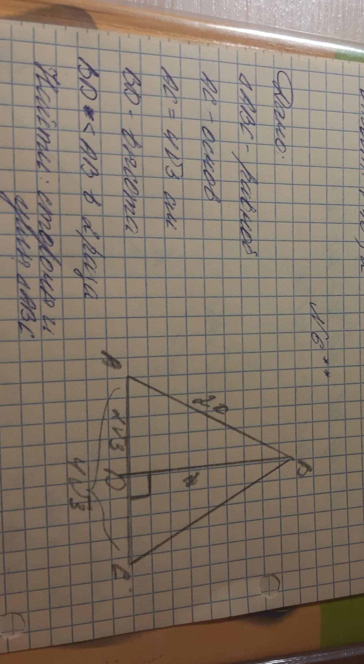 треугольник abc-равнобедренный ac-основание ac=4корень3 bd-высота bd больше ab в 2 раза найти стороны и углы треугольника