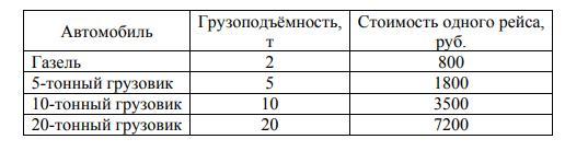 Нужно перевезти 160 тонн груза. Данные о грузоподъёмности автомобиля и стоимости