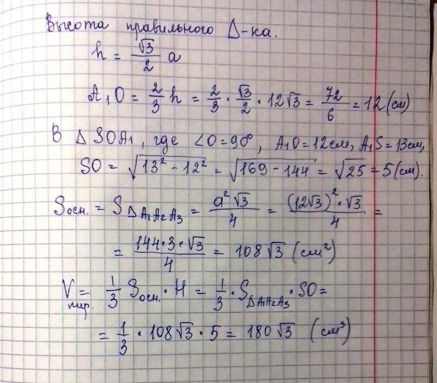 h ΔА₁А₂А₃= (а√3):2=(12√3√3):2=18;