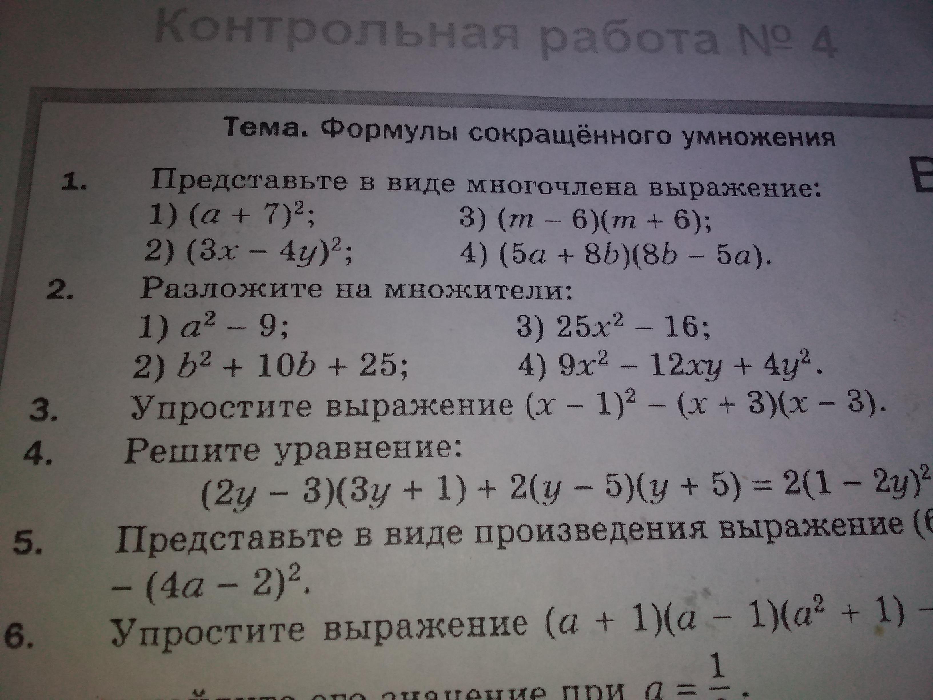 4)9х2-12ху+4у2= ( 3х-2у) и это выражение в квадрате