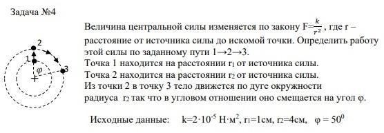 Вычислить работу центральной силы на участке 1 - 2 - 3.