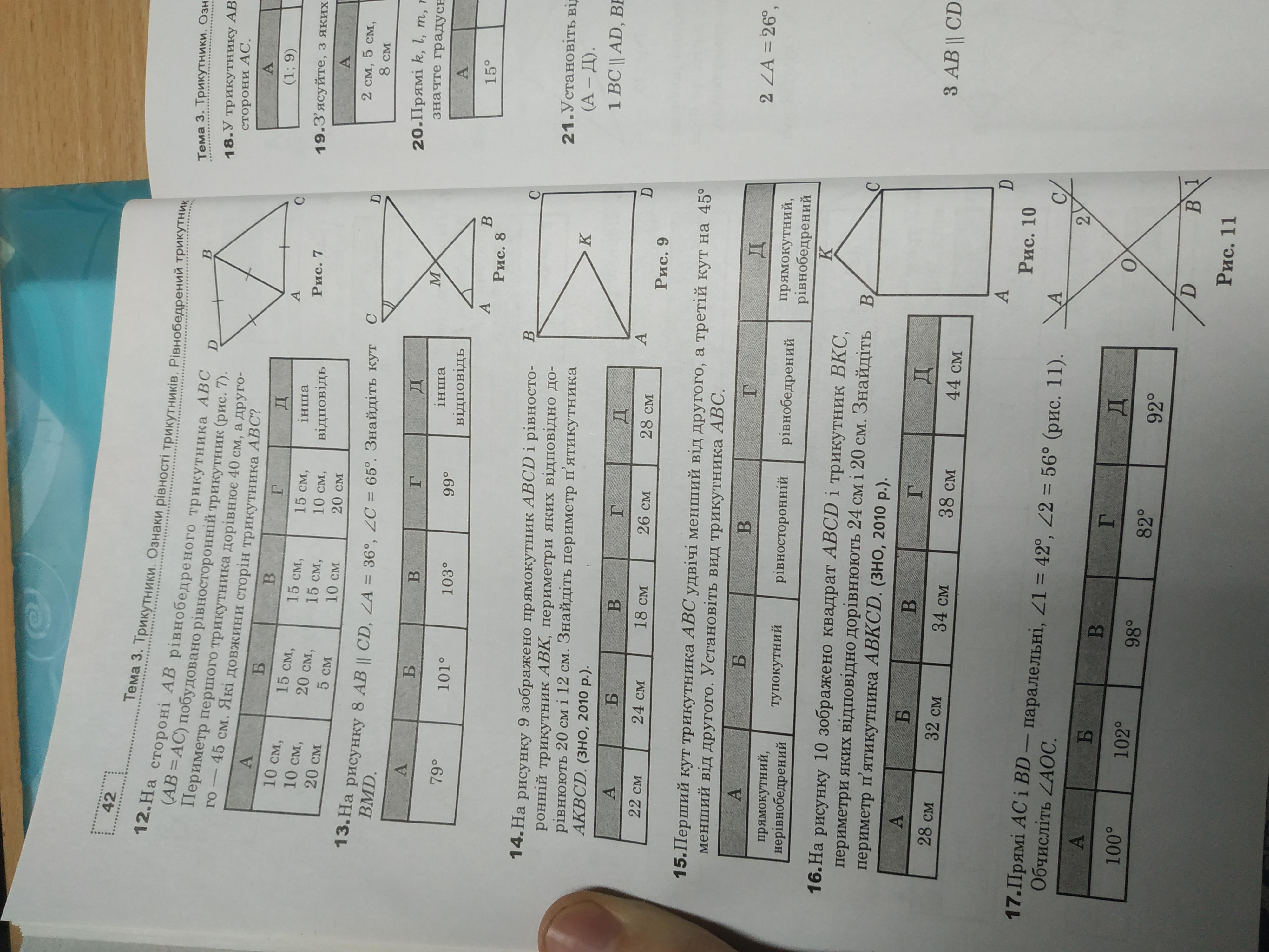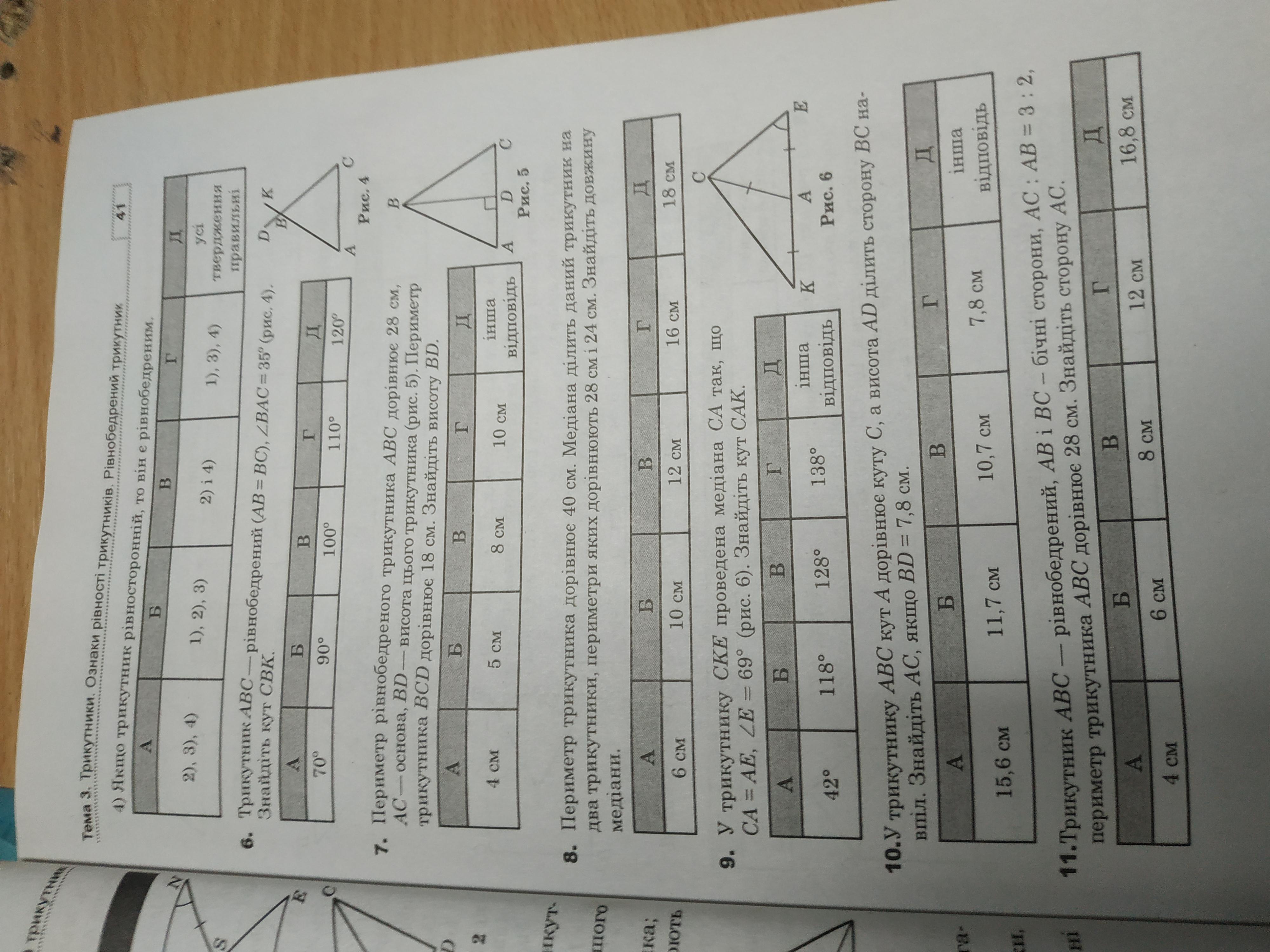 1)Якщо трикутник рівнобедрений,то кути при основі рівні.