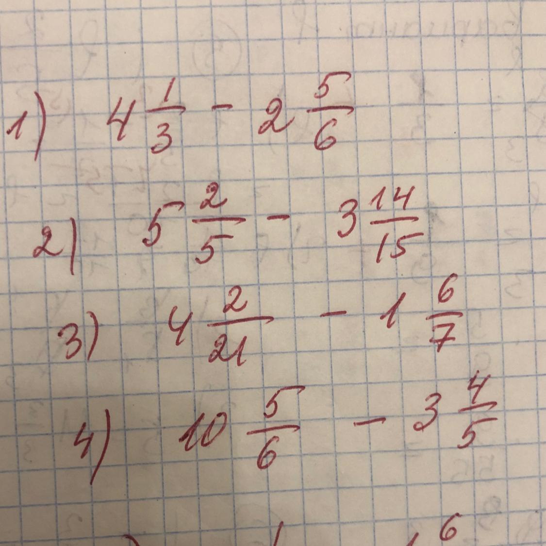 3)4 2/21 - 1 6/7 = 4 2/21 - 1 18/21 = 3 23/21 - 1 18/21 = 2 5/21