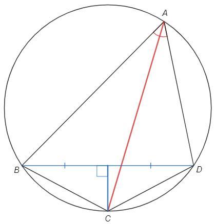 Дано, что точка С лежит на биссектрисе угла A и серединном перпендикуляре к BD.