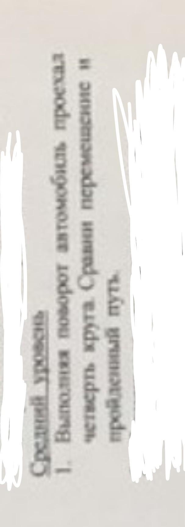 Выполняя поворот автомобиль проехал четверть круга. Сравни перемещение и пройденный путь.