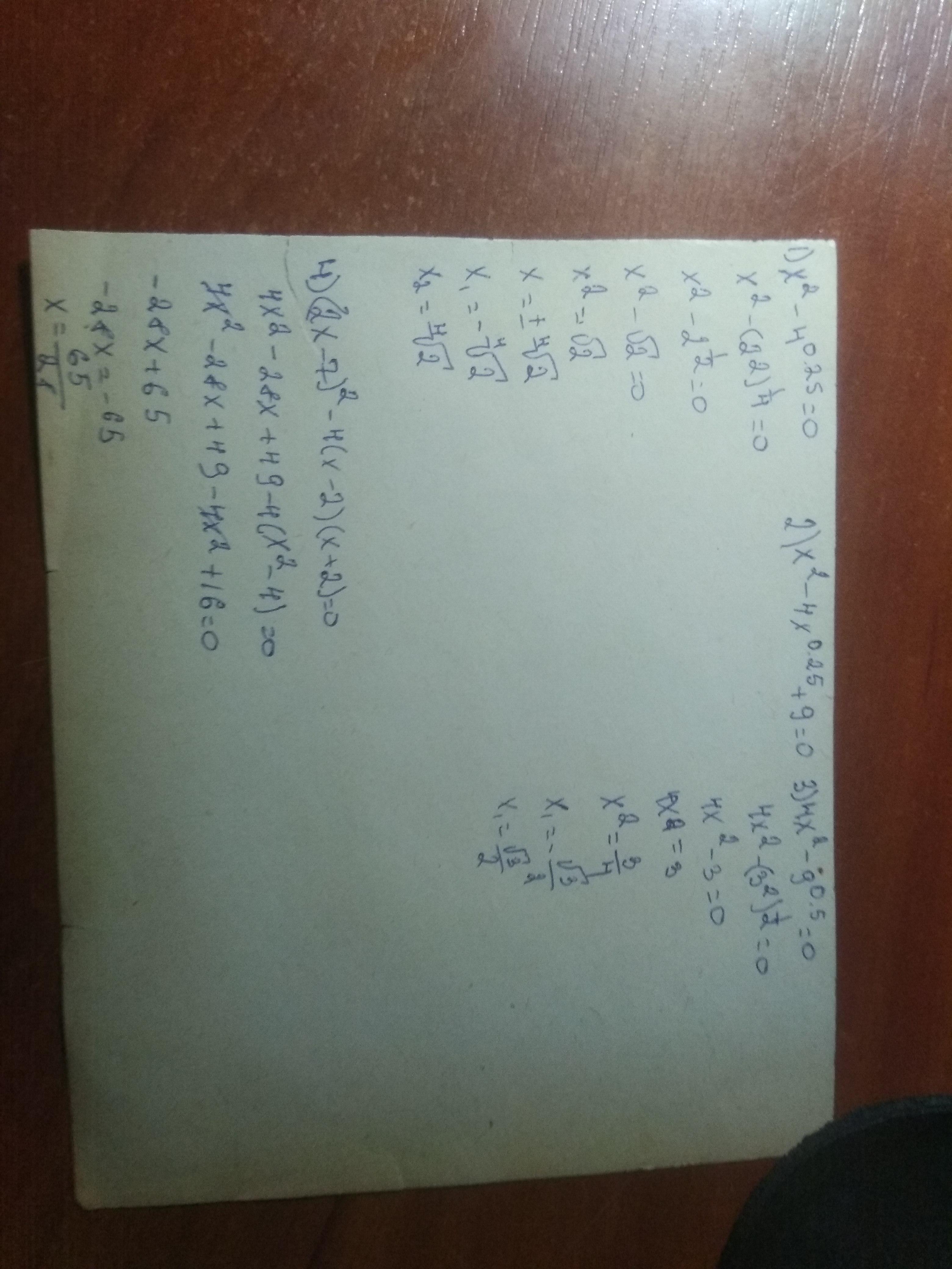 решить уравнение a)x^2-4^0,25=0 б)x^2-4x^0,25+9=0