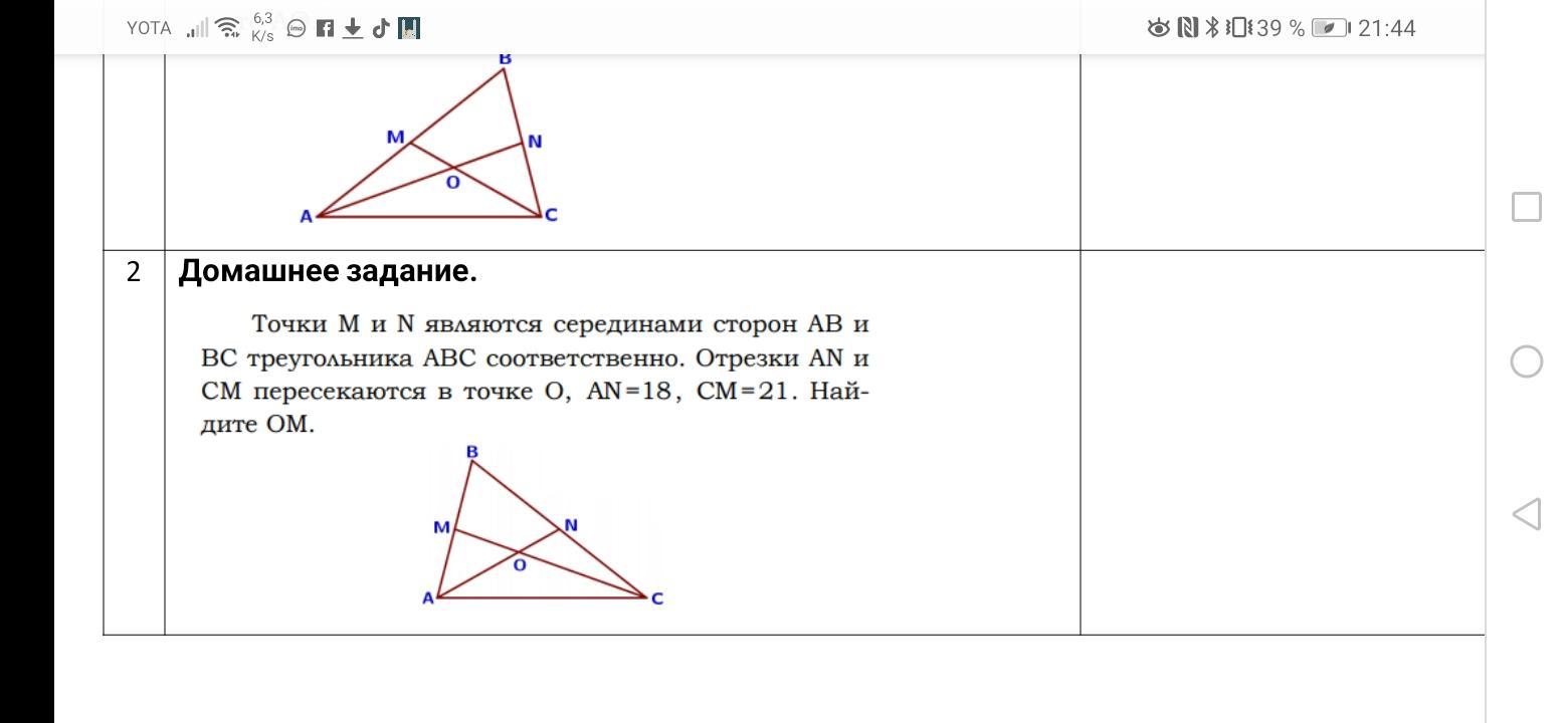 Ответ: МО=7см.