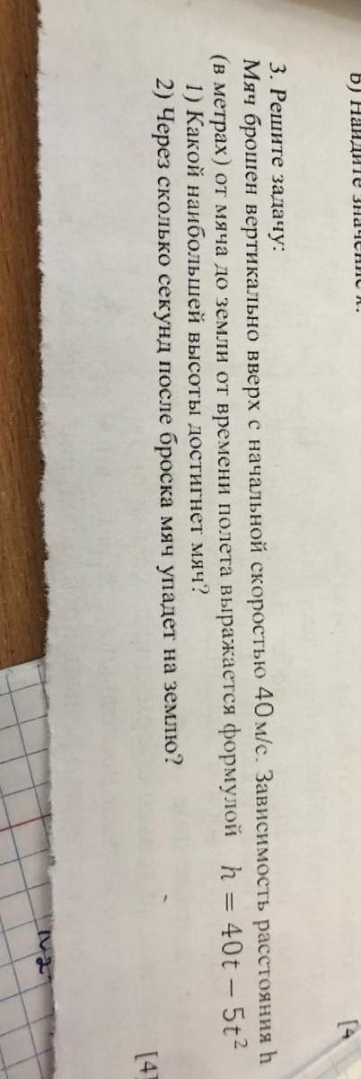 40-10t=0, где t - время полета мяча до наибольшей высоты, с.