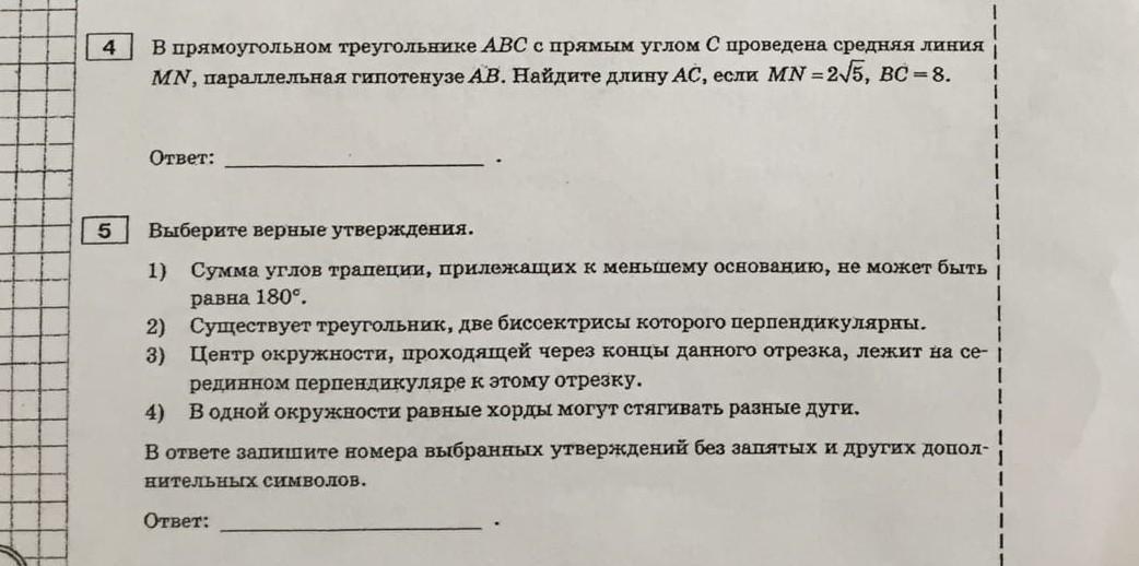 AB = 2MN = 4√5 (средняя линия равна половине стороны, которой она параллельна)