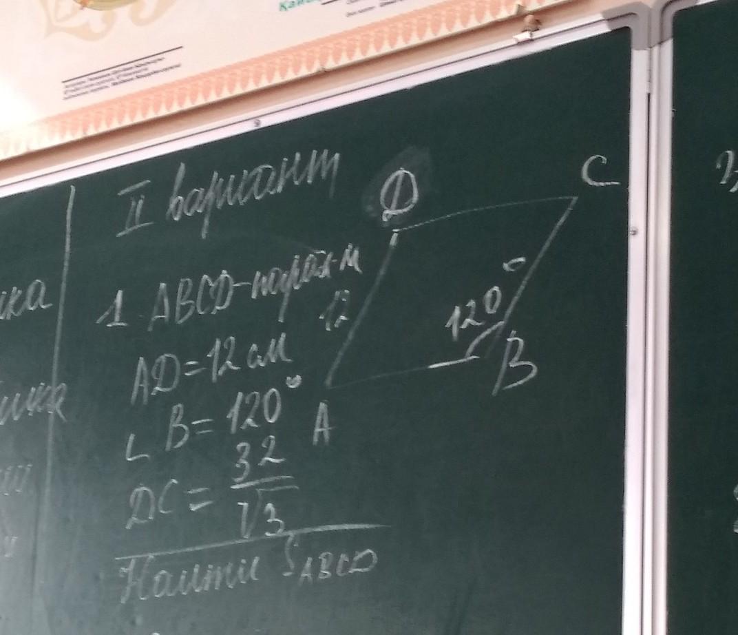 S(ABCD)=ADcdot DCcdot sinangle D=12cdot dfrac{32}{sqrt3}cdot sin120^circ =dfrac{12cdot 32}{sqrt3}cdot sin60^circ =\\=dfrac{12cdot 32}{sqrt3}cdot frac{sqrt3}{2}=6cdot 32=192