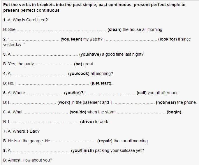 Put the verbs in brackets into the past simple, past continuous, present perfect simple or present perfect continuous.
