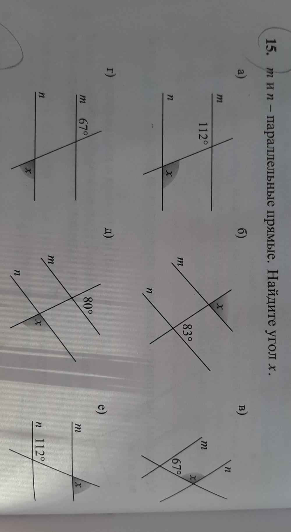 г)х=67 (т.к. углы внешние накрест лежащие)