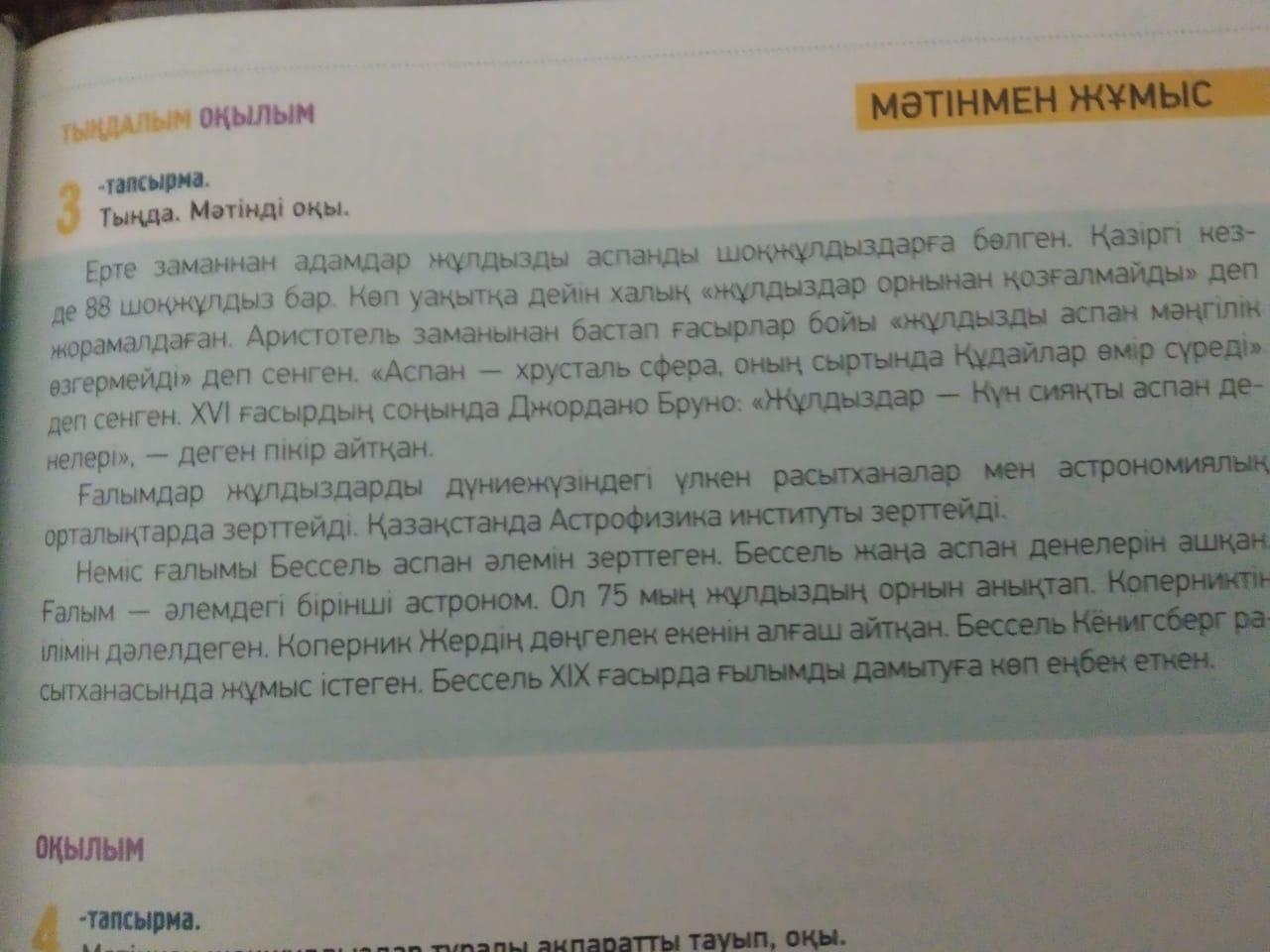 Нужно выписать 3-4 предложения о созвездии из текста на казахском языке.