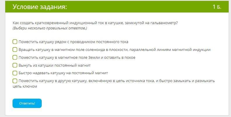 Вращать катушку в магнитном поле соленоида так, чтобы плоскость витков была перпендикулярна линиям магнитной индукции