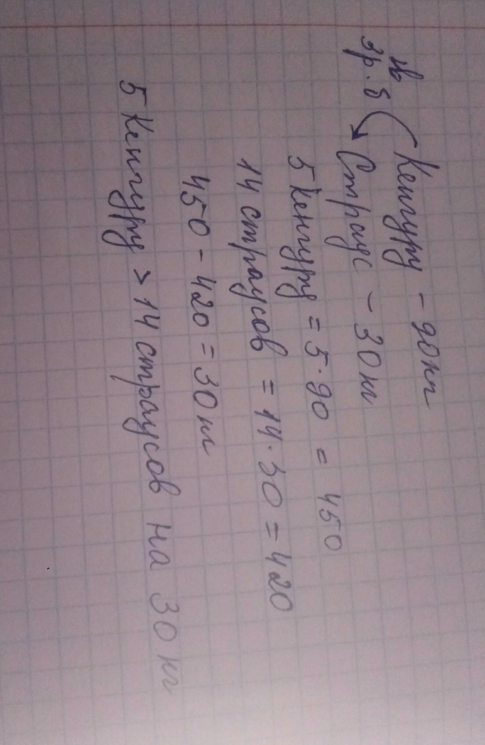 Вес взрослого кенгуру достегает 90кг, что в 3 раза больше среднего веса страуса эму. Кто тяжелее и на сколько килограммов: 5 кенгуру или 14 страусов