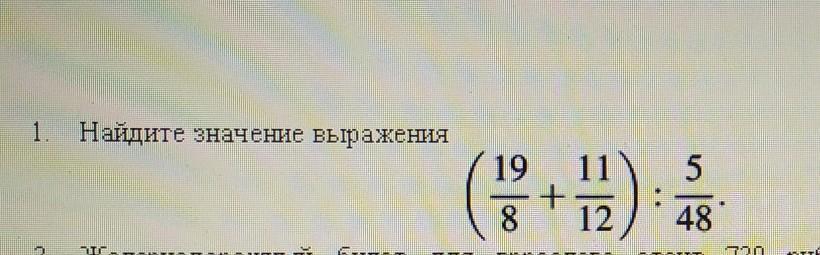 ((19/8)+(11/12)):(5/48)=((19*3+11*2)/24):(5/48)=((57+22)/8):(5/48)=