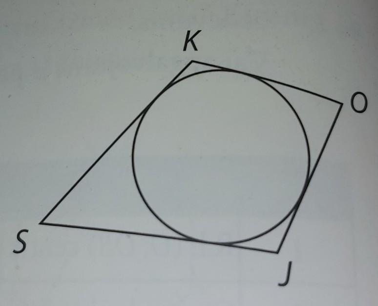 Так как в четырёхугольник можно вписать окружность, то справедливо равенство JS+KO=SK+JO. Следовательно P четырёхугольника = 2(JS+KO) = 12m
