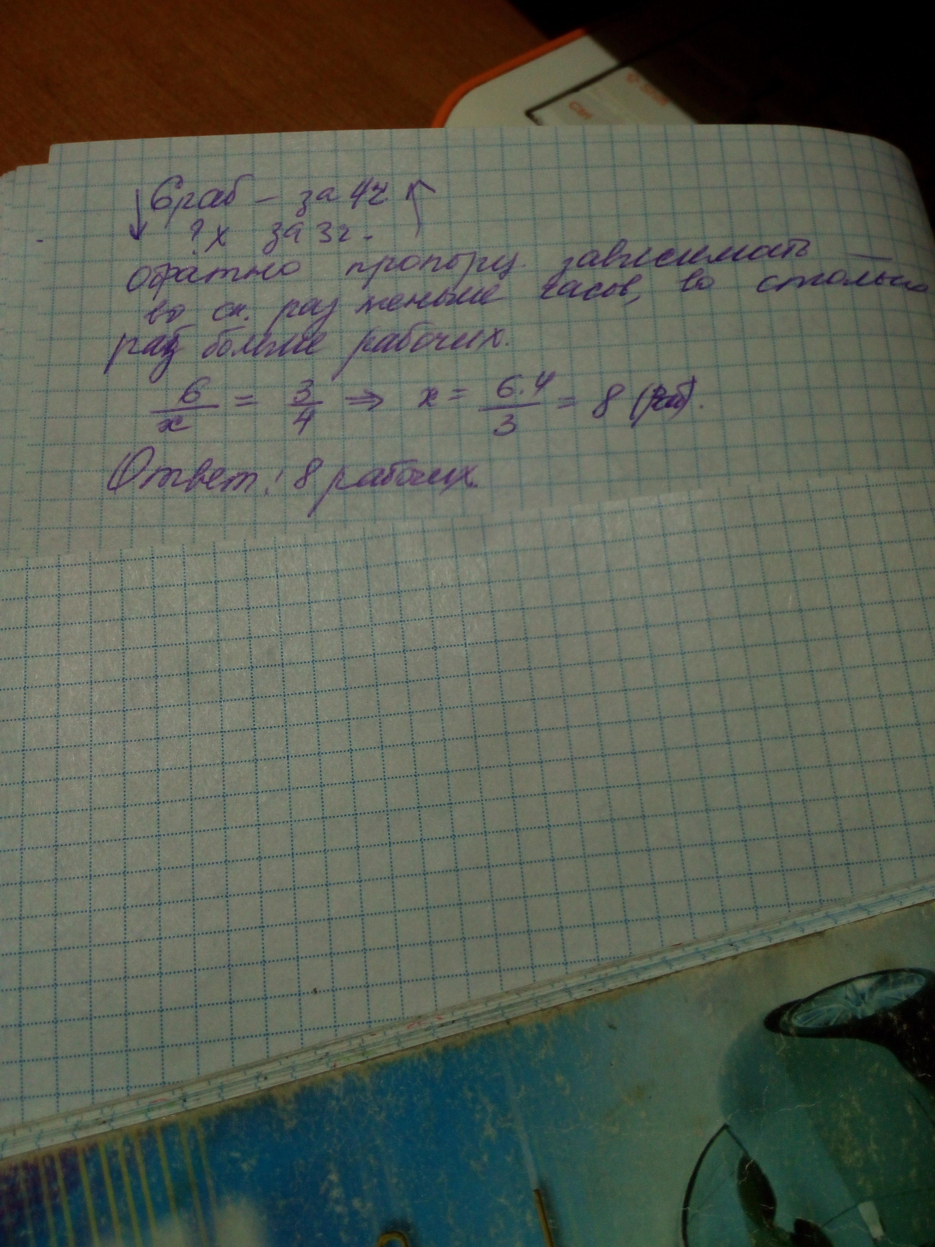 6-ть рабочих выполняют работу за 4 часа. Сколько рабочих выполняют эту же работу за 3 часа?