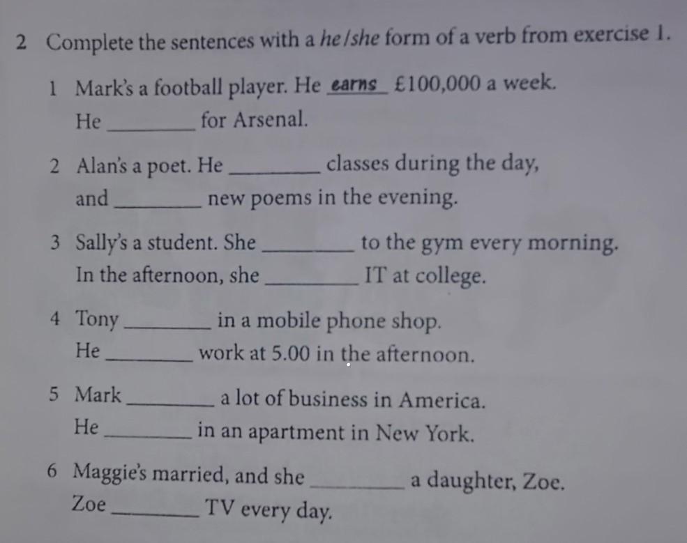 3 She goes to the gym every morning. In the afternoon, she studies IT at college.