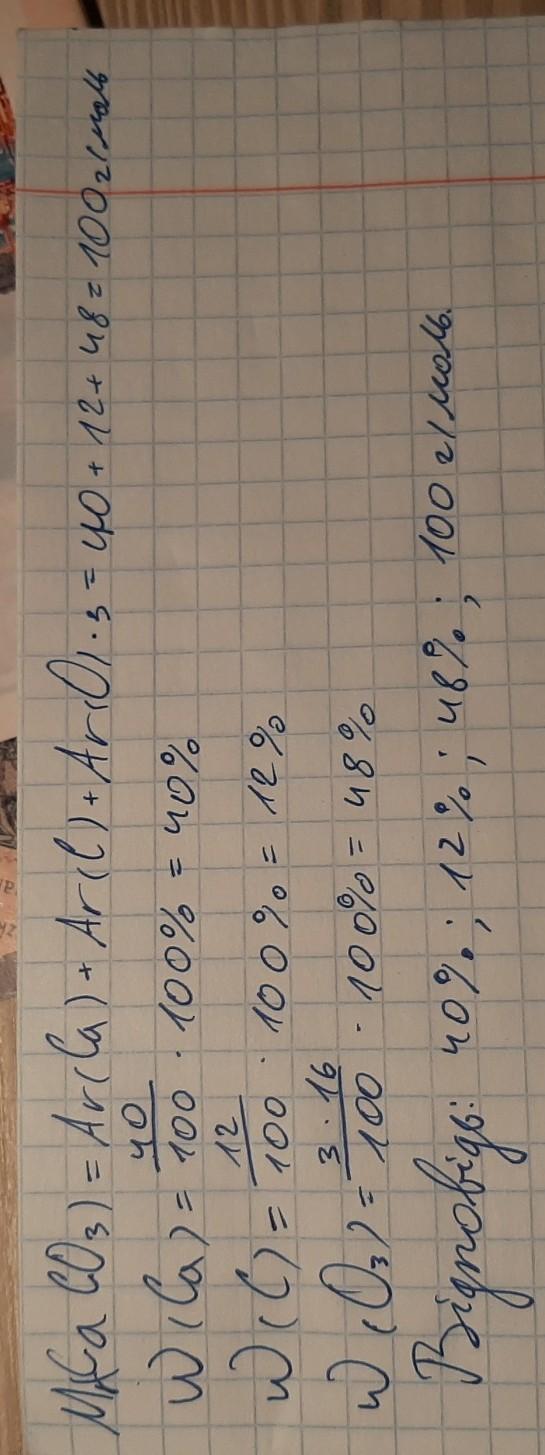 7.2. Обчисли відносну формульну масу кальцій карбонату СаСОз та співвідношення масових часток хімічних елементів у цій речовині.