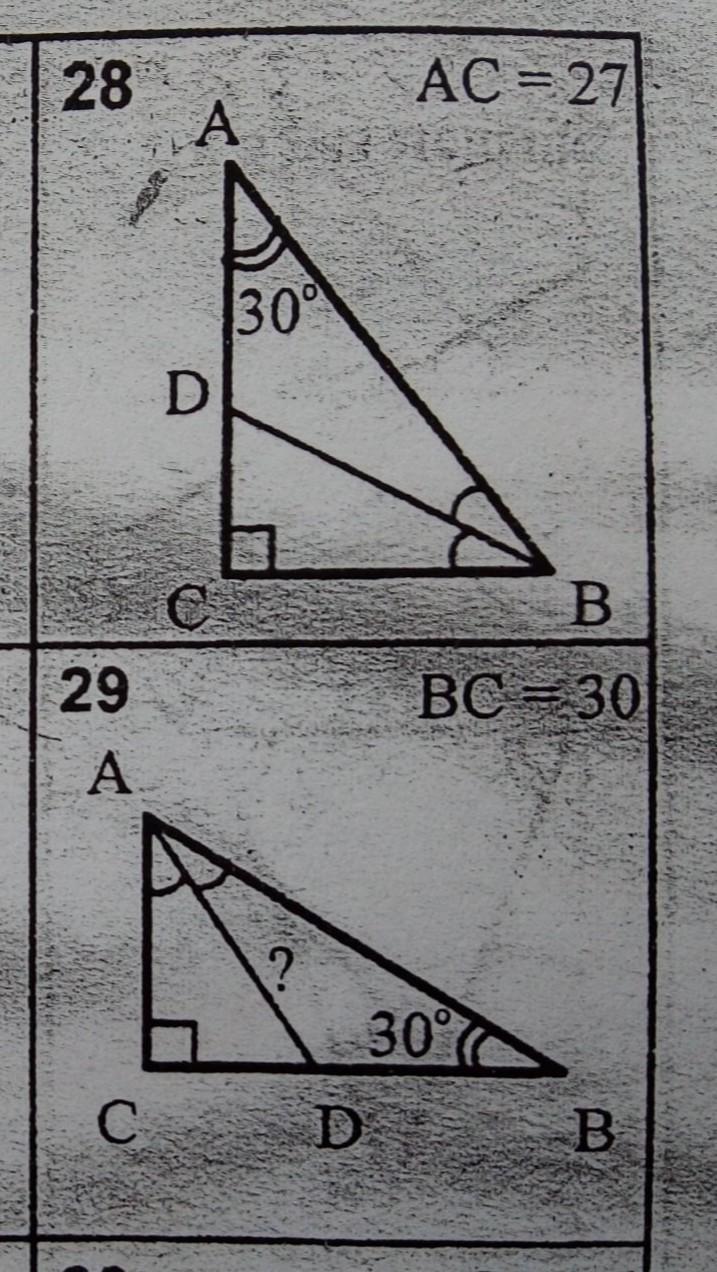 З трикутника АВС за умовою дано кут С=90 градусів, кут В 30 градусів, отже кут А 60 градусів. Якщо АD висота то CD=DB=15 см.