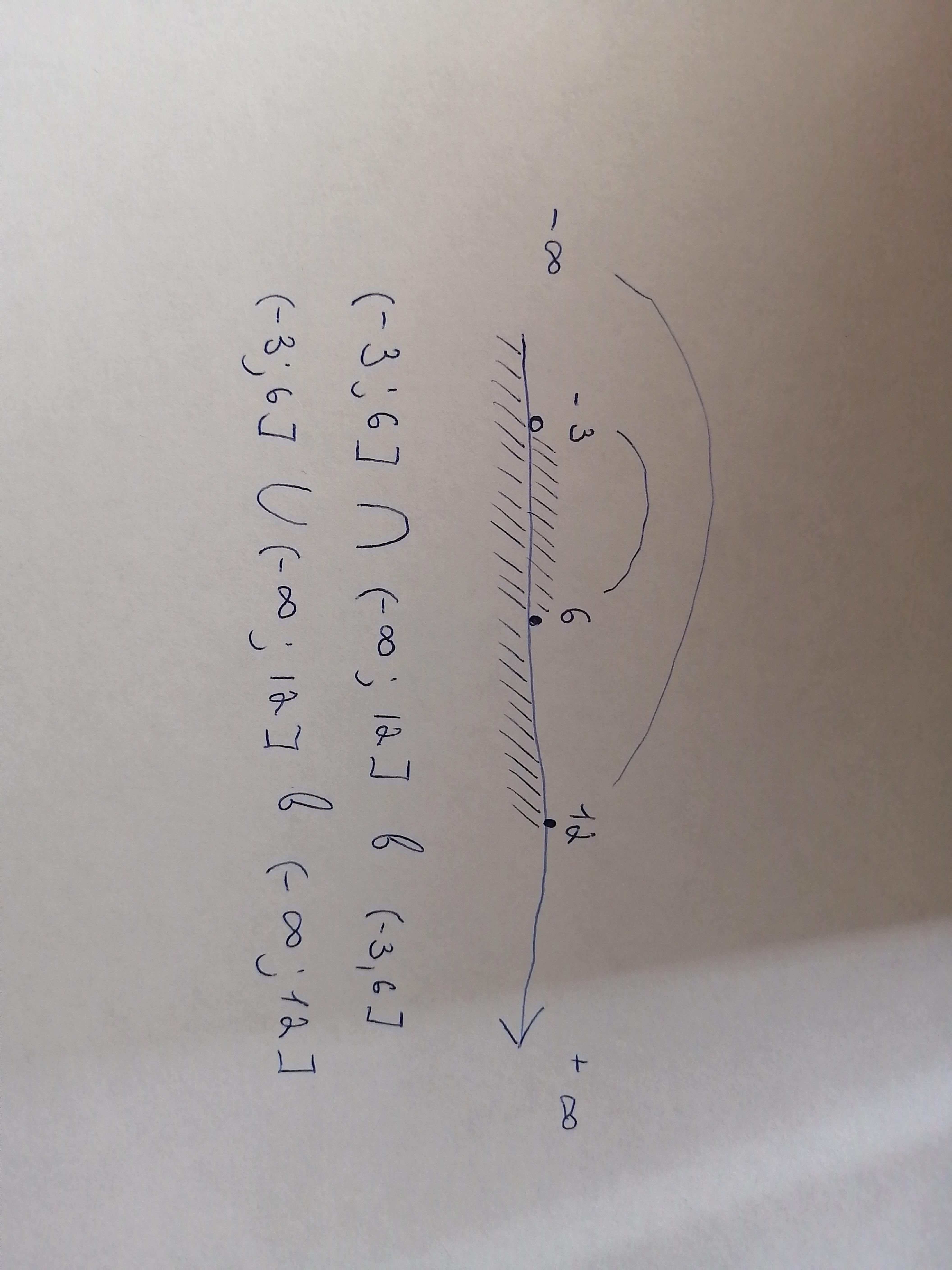 изобразите на координатной прямой и запишите пересечения и обьеденение числовых промежутков [-∞;12] и (-3,6]