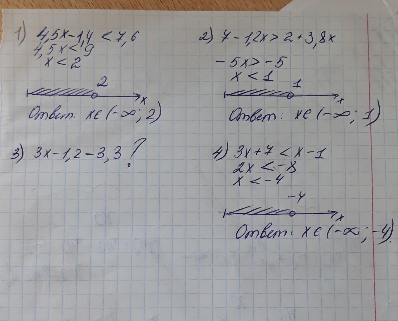 1) 4, 5х – 1,4 < 7, 6; 3) 7 – 1,2x > 2 + 3,8х;