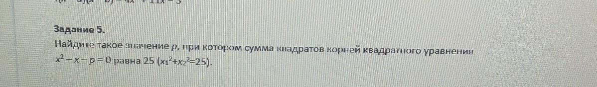 Найдите такое значение р, при котором сумма квадратов корней квадратного уравнения