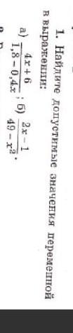1); ; frac{4x+6}{1,8-0,4x}\\1,8-0,4xne 0; ; to ; ; xne 4,5; ; ,\\xin (-infty ;; 4,5)cup (4,5, ;+infty )\\\2); ; frac{2x-1}{49-x^2}\\49-x^2ne 0; ; to ; ; xne pm 7\\xin (-infty ,-7)cup (-7,7)cup (7,+infty )