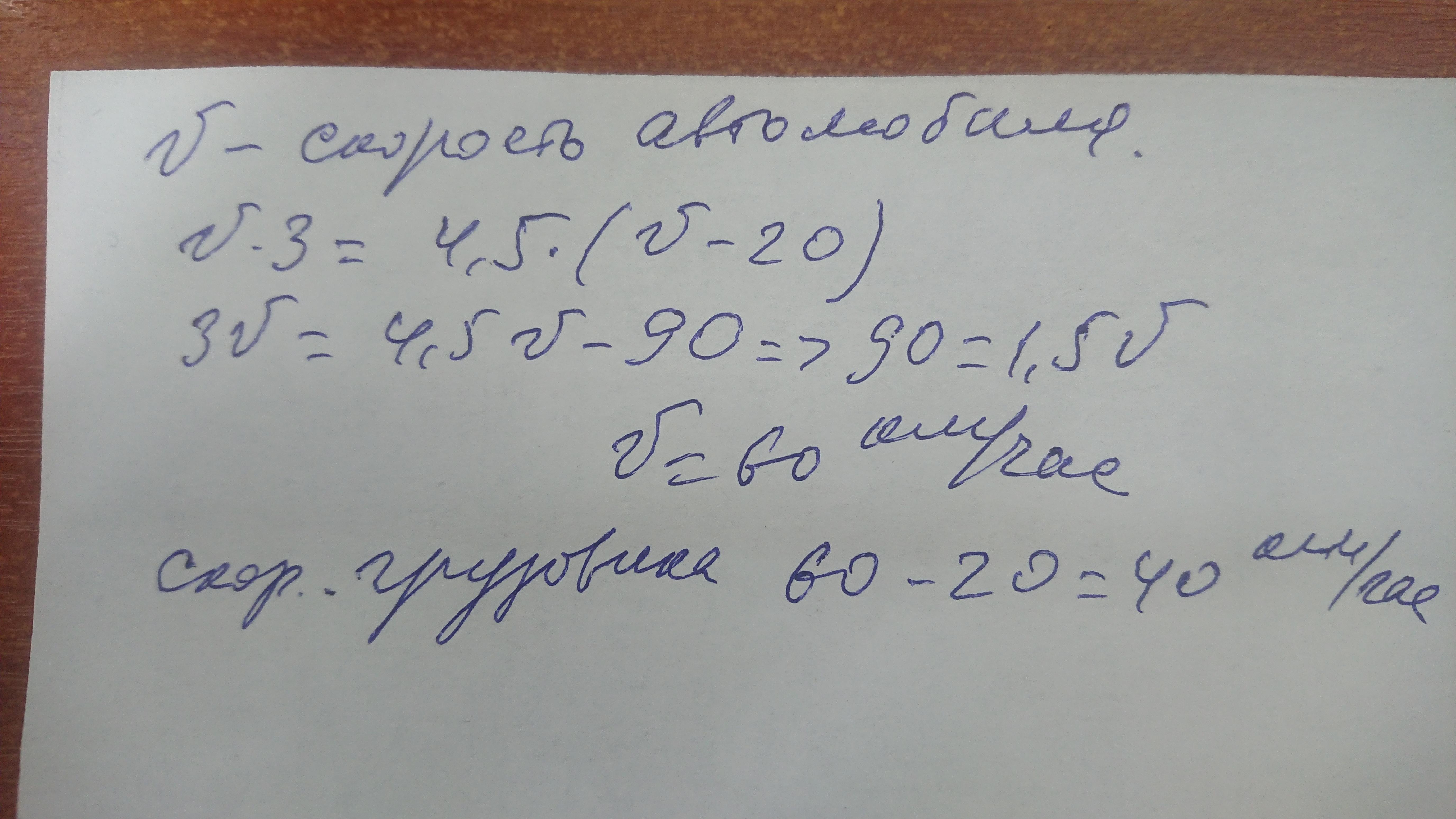 автомобиль проехал путь за 3 часа грузовик за 4.5 часа скорость грузовика на 20 км/ч менише меньше автомобиля найти скорость грузовика