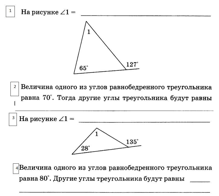 1)смежный угол и внутренний образуют угол 180°, т. е. 180°-127°=53°. А сумма внутренних углов равна 180° = > 180°-(53°+65°)=62°