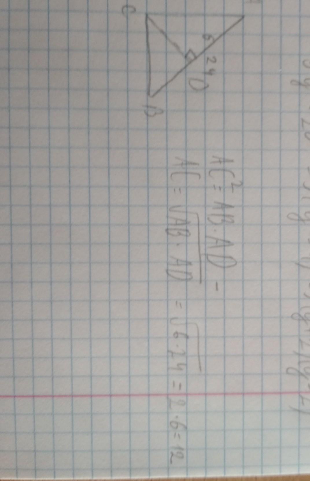 Найдите катет прямоугольного треугольника с гипотенузой 24см, если проекция этого катета на гипотенузу равна 6см